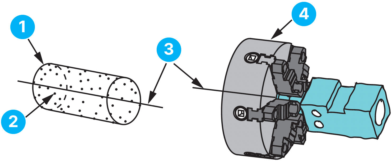 The drawing specification defines the theoretical true geometric counterpart to establish the datum (no measurement uncertainty). In real inspections, using a TGC is not possible. Instead, a physical datum feature simulator is used to establish a simulated datum. This could be either a piece of hard tooling (collet, chuck, surface plate, angle plate) that engages the feature or soft tooling (CMM or OMM algorithms) used on the measurement points.