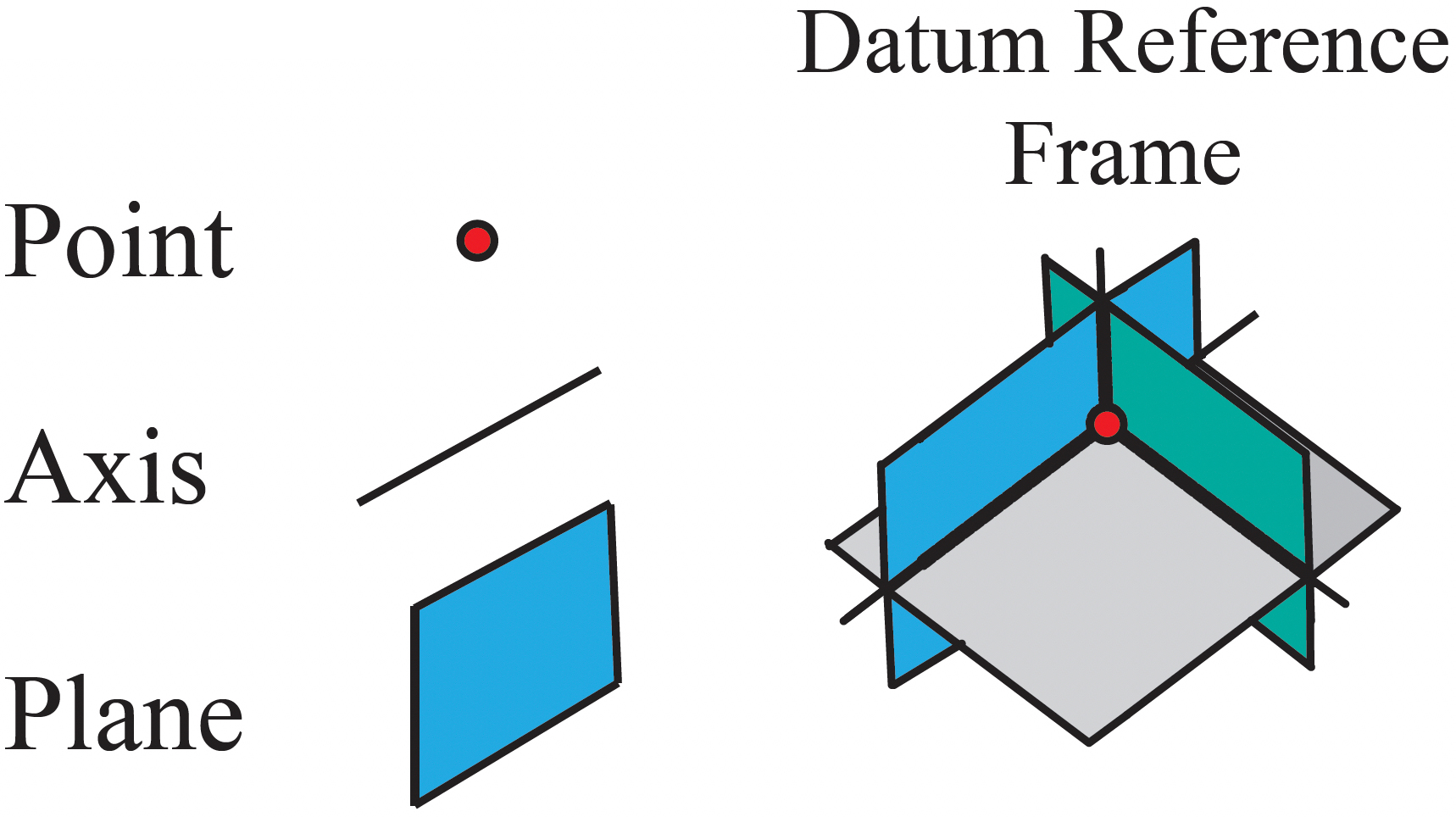 Datum features are the actual, physical features on the part. They are not perfect and will always have manufacturing variation.