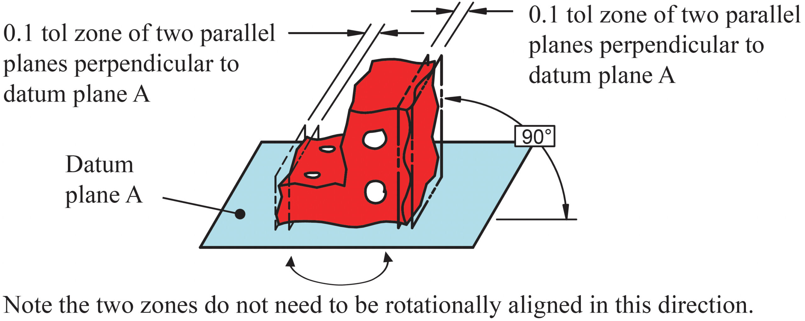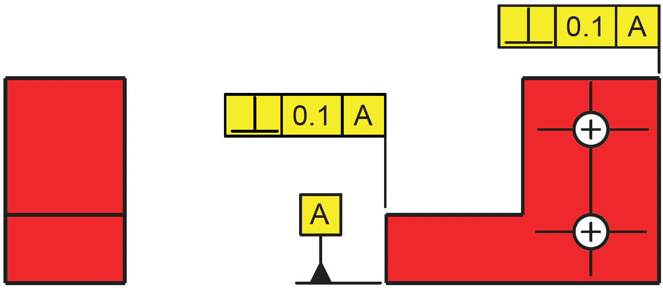 Perpendicularity is the condition of a surface, median plane, or axis oriented at 90˚ to the datum reference frame.